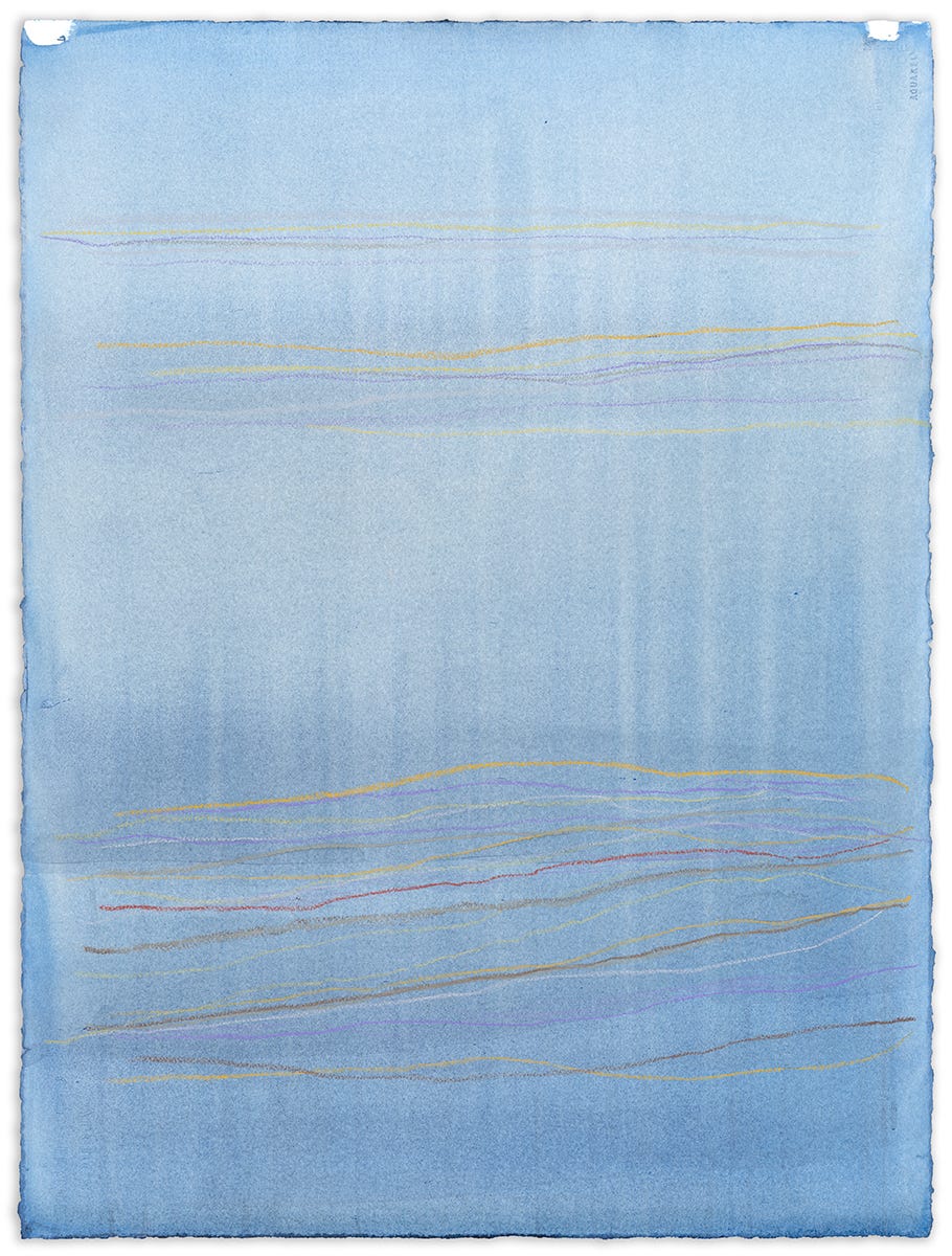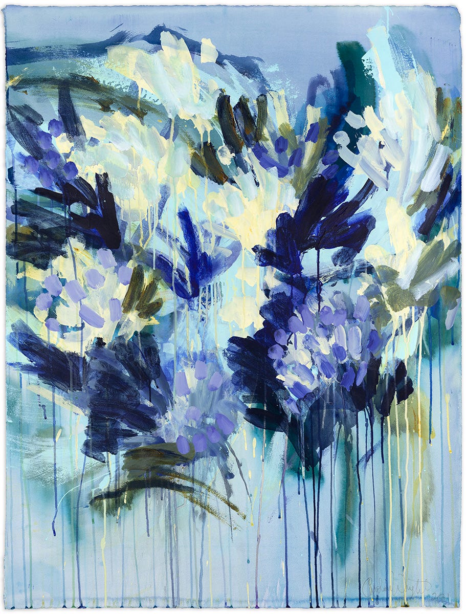 Baby Blues, letting my art speak for my ups and downs. 44x36”. Acrylic and Flashe on watercolor paper.