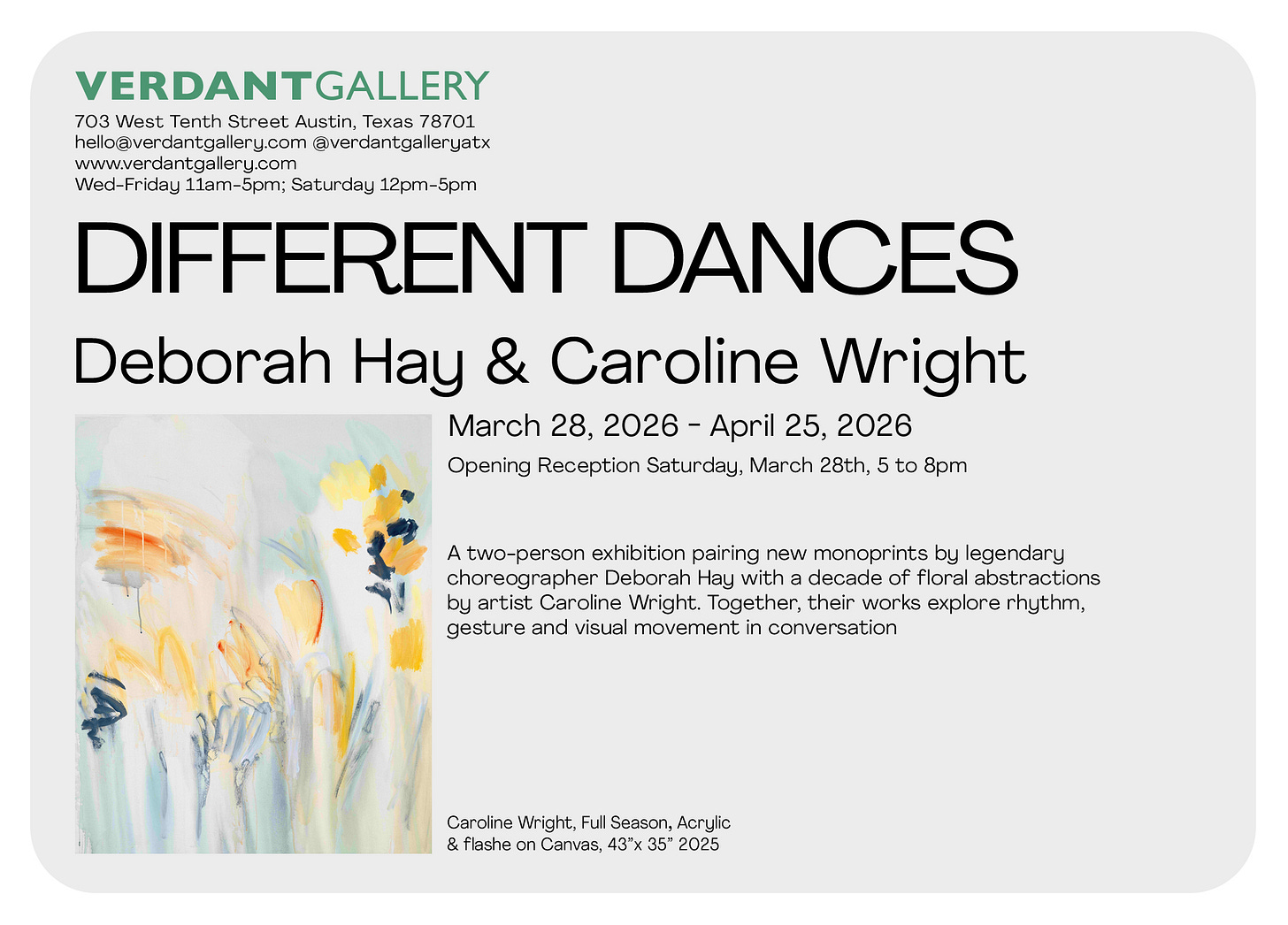 I hope you’ll join us for the opening of Different Dances, at Verdant Gallery in Austin, Texas, on March 28th from 4-8 pm.